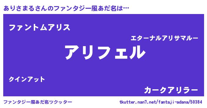 | ヒーロー風カッコイイあだ名 | 『スーパーアリサマル』『天弓騎士アリ』 |