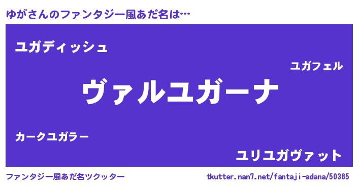 | 男性向けラノベタイトル風あだ名 | 『魔弾の王とゆが』『ユガスレイヤー』 |