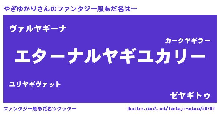 | 欧米人風あだ名 | 『やぎゆかりクリステル』 |