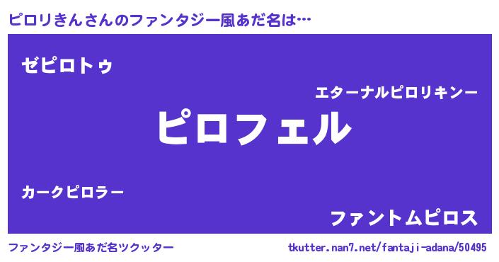 | ヒーロー風カッコイイあだ名 | 『スーパーピロリキン』『天弓騎士ピロ』 |