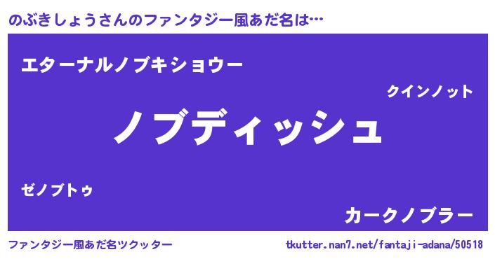 | 胡散臭い通販商品みたいなあだ名 | 『絶対に幸福をもたらす水素水…その名も「のぶきしょう」』 |