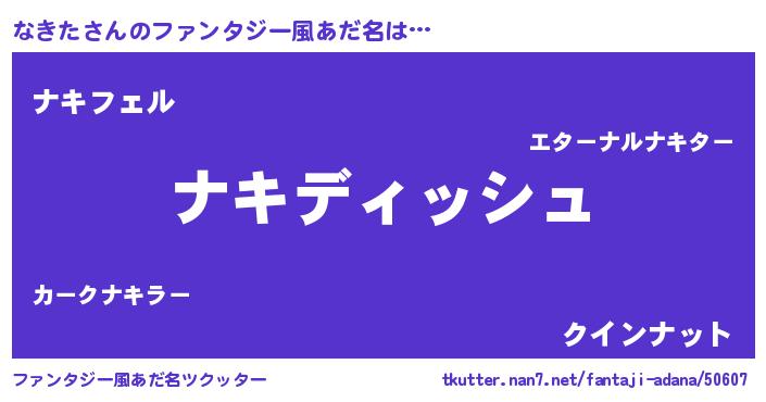 | 女子向けラノベタイトル風あだ名 | 『なきたの契約王妃』『なきた恋絵巻』 |