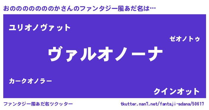 | 男性向けラノベタイトル風あだ名 | 『魔弾の王とおのののののののか』 |