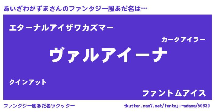 | 男性向けラノベタイトル風あだ名 | 『魔弾の王とあいざわかずま』 |