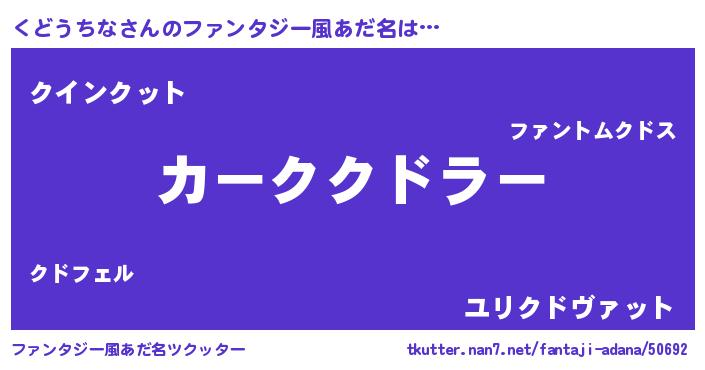 | ヒーロー風カッコイイあだ名 | 『天空の使者くどうちな』『炎刃騎士クド』 |