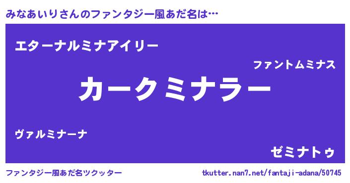 | 欧米人風あだ名 | 『みなあいり・ステッグマイヤー』 |