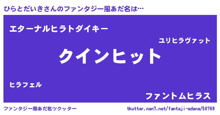 | 男性向けラノベタイトル風あだ名 | 『ノーゲーム・ノーヒラトダイキ』 |