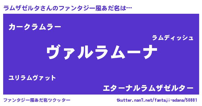 | 女子向けラノベタイトル風あだ名 | 『悪役ラムザゼルタに転生したようですが、知った事ではありません』 |