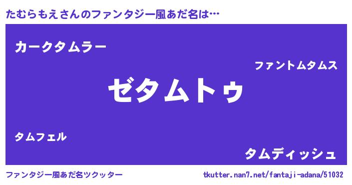 | 意味不明あだ名 | 『自称たむらもえ』『永久保存たむらもえ』 |