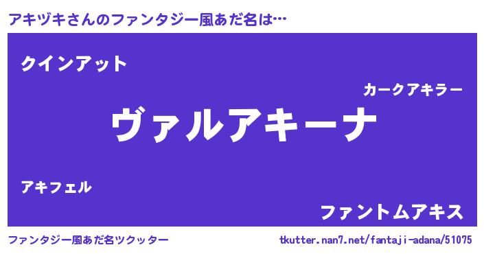 | 男性向けラノベタイトル風あだ名 | 『魔弾の王とアキヅキ』『アキヅキの憂鬱』 |