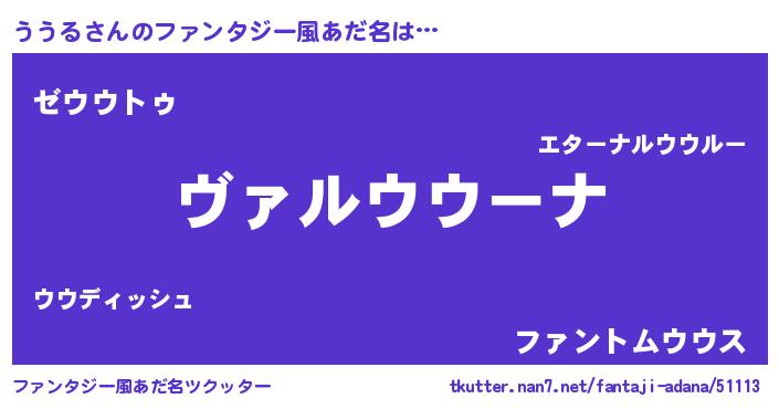 | 男性向けラノベタイトル風あだ名 | 『この素晴らしい世界にううるを!』 |