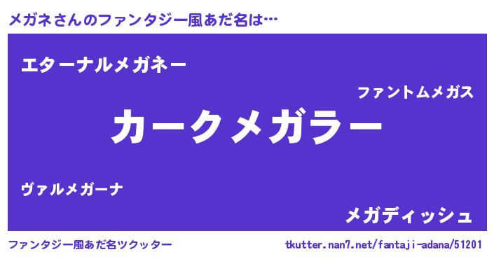 | 意味不明あだ名 | 『メガネフォーエバー』『永久保存メガネ』 |