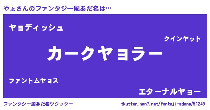 | 伝説のあだ名 | 『聞きしに勝る勇者やょ』 |