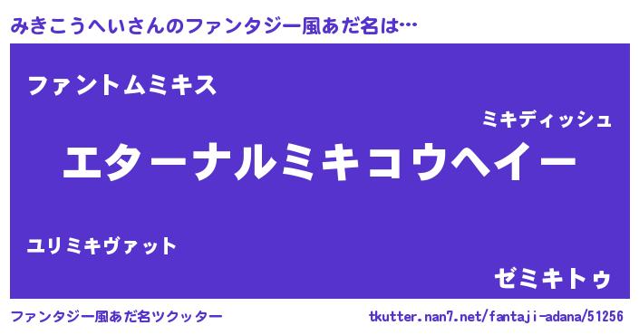 | 男性向けラノベタイトル風あだ名 | 『みきこうへいに滅ぼされるだけの簡単なお仕事です』 |