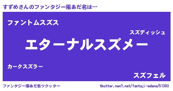 | ヒーロー風カッコイイあだ名 | 『ウルトラすずめマン』『黄金騎士スズ』 |
