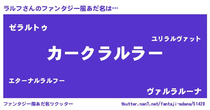 | 男性向けラノベタイトル風あだ名 | 『緋弾のラルフ』『魔法科高校のラルフ』 |