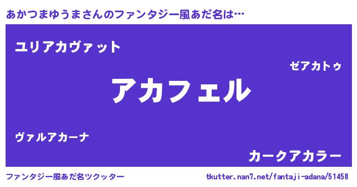 | 男性向けラノベタイトル風あだ名 | 『アカツマユウマアートオンライン』 |