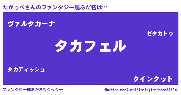 | 男性向けラノベタイトル風あだ名 | 『タカッペアートオンライン』 |