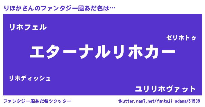 | 女子向けラノベタイトル風あだ名 | 『りほかの雑貨屋さん』『闇のりほか』 |