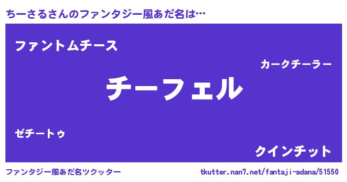 | 意味不明あだ名 | 『ペロリンちーさる』『自称ちーさる』 |