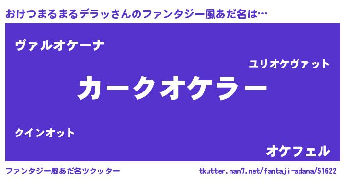 | 意味不明あだ名 | 『住所不定無職おけつまるまるデラッ(81歳)』 |