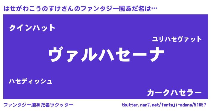 | 男性向けラノベタイトル風あだ名 | 『魔弾の王とはせがわこうのすけ』 |