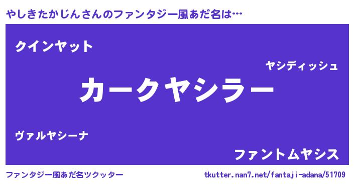 | ヘコむあだ名 | 『やしっぺ』『やしきたかじん(苦笑)』 |