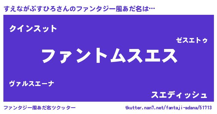 | ポケモン風あだ名 | 『ヒスエナガブスヒロ』『スックウザ』 |