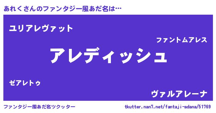 | 自動車の名前っぽいあだ名 | 『ヴィッア』『アールスレイス』 |