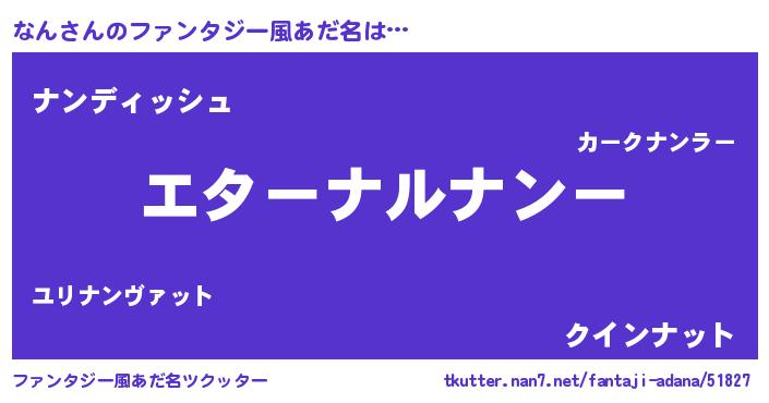 | ポケモン風あだ名 | 『ナンダネ』『ゼニナン』 |