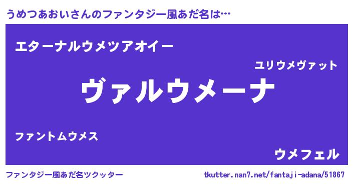 | 意味不明あだ名 | 『住所不定無職うめつあおい(47歳)』 |