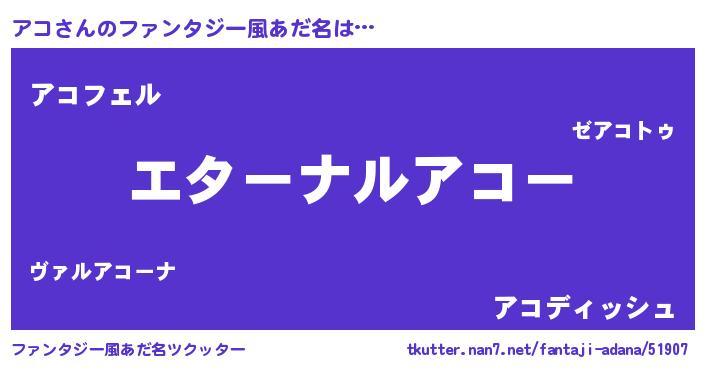 | 意味不明あだ名 | 『アコフォーエバー』『ペロリンアコ』 |