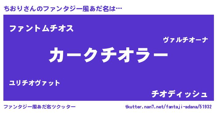 | 欧米人風あだ名 | 『ちおり・ステッグマイヤー』 |