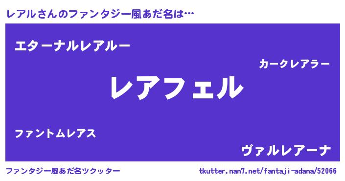 | 男性向けラノベタイトル風あだ名 | 『レアルの憂鬱』『魔弾の王とレアル』 |
