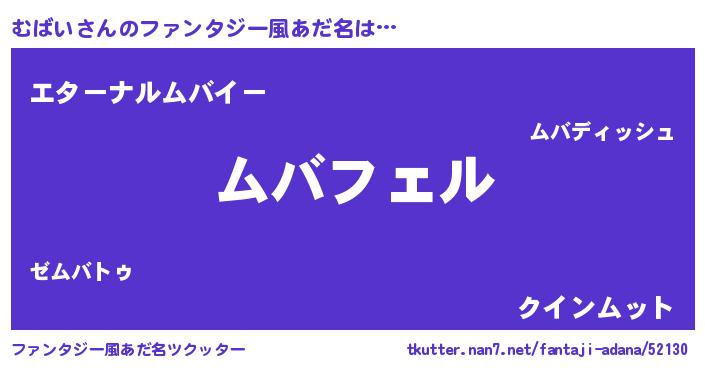 | 2回繰り返すあだ名 | 『むばむば』『むむばば』『ふかふか』 |