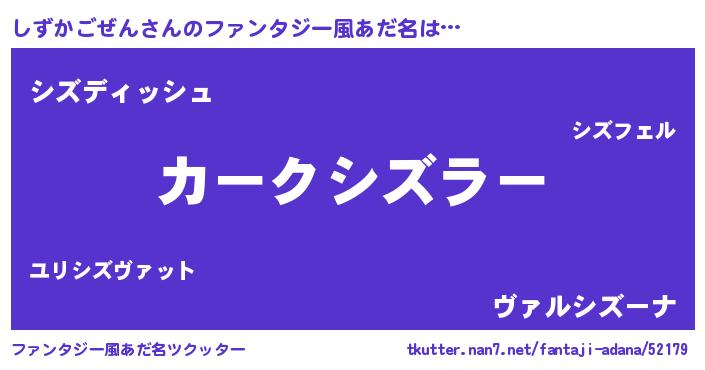 | ヒーロー風カッコイイあだ名 | 『ネオシズカゴゼン』『仮面シズダー』 |