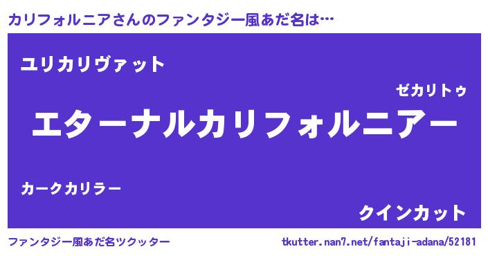 | 欧米人風あだ名 | 『カリフォルニアクリステル』 |