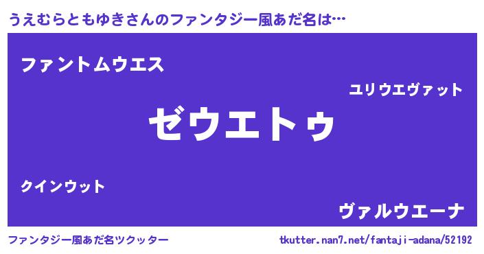 | ポケモン風あだ名 | 『ウエセウス』『ヒウエムラトモユキ』 |