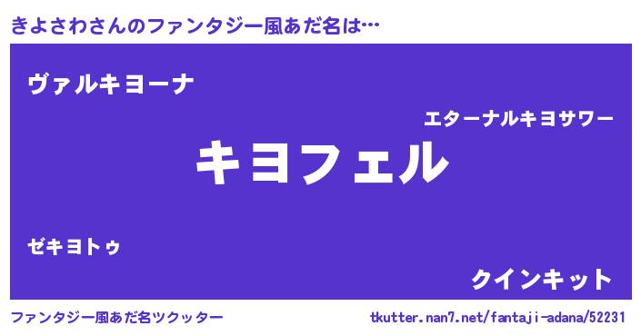 | 男性向けラノベタイトル風あだ名 | 『きよさわの憂鬱』『魔弾の王ときよさわ』 |