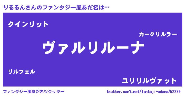 | 男性向けラノベタイトル風あだ名 | 『魔弾の王とりるるん』 |