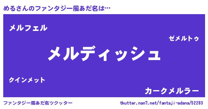 | 女子向けラノベタイトル風あだ名 | 『めるの契約王妃』『闇のめる』 |