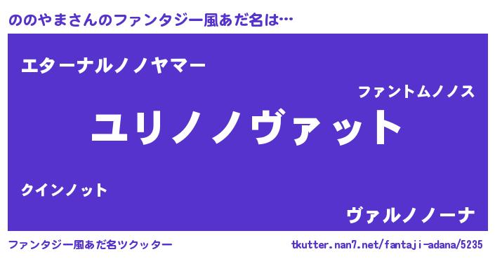 | 男性向けラノベタイトル風あだ名 | 『転生したらののやまだった件』 |