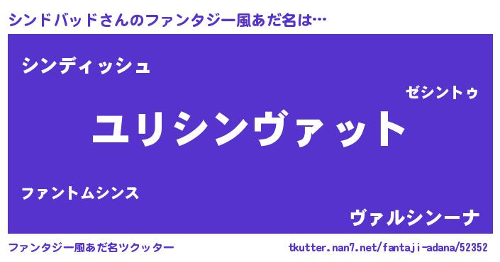 | 男性向けラノベタイトル風あだ名 | 『シンドバッド~年齢イコール彼女いない歴の魔法使い~』 |
