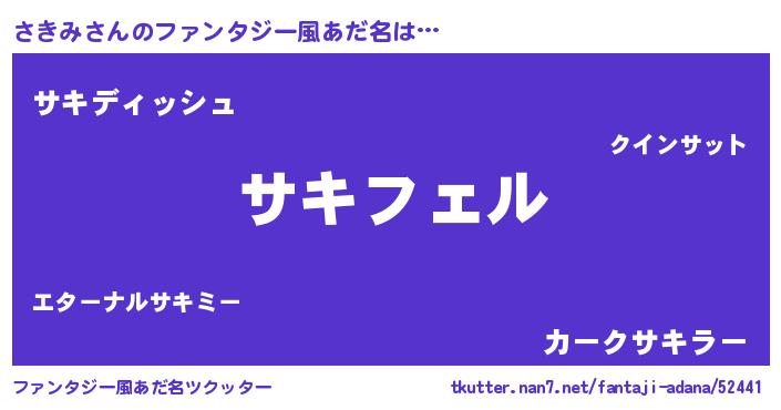 | 男性向けラノベタイトル風あだ名 | 『サキミアートオンライン』 |