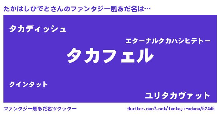 | 男性向けラノベタイトル風あだ名 | 『たかはしひでとの憂鬱』 |