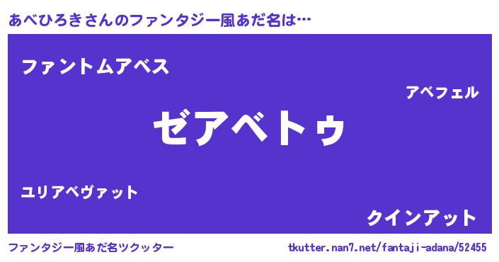 | ヒーロー風カッコイイあだ名 | 『最強戦士アベヒロキ』『幻影騎士アベ』 |