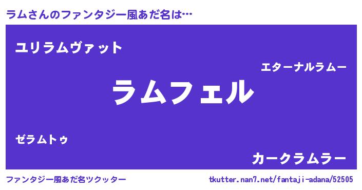 | ポケモン風あだ名 | 『ラムチュウ』『ラムキング』 |
