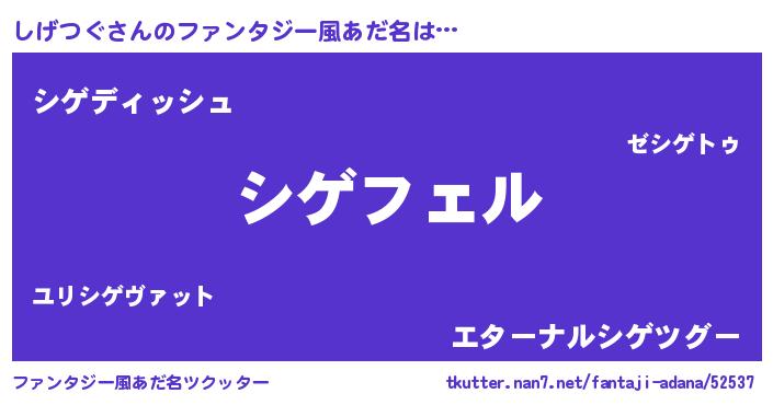 | 男性向けラノベタイトル風あだ名 | 『シゲツグアートオンライン』 |