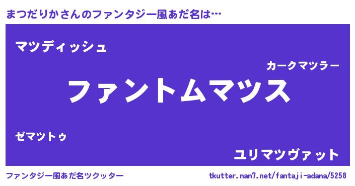 | 意味不明あだ名 | 『とにかく怪しいまつだりか』 |