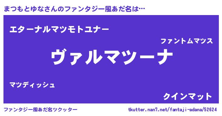 | 男性向けラノベタイトル風あだ名 | 『この素晴らしい世界にまつもとゆなを!』 |